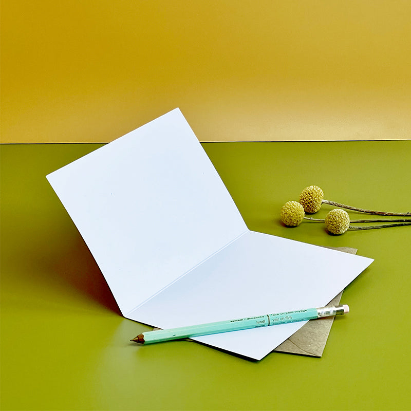 Paris greeting cards come with a recycled kraft envelope and are packaged inside a biodegradable sleeve, and posted inside a recycled paper padded jiffy bag for extra protection so they arrive in perfect condition and it's all plastic free.