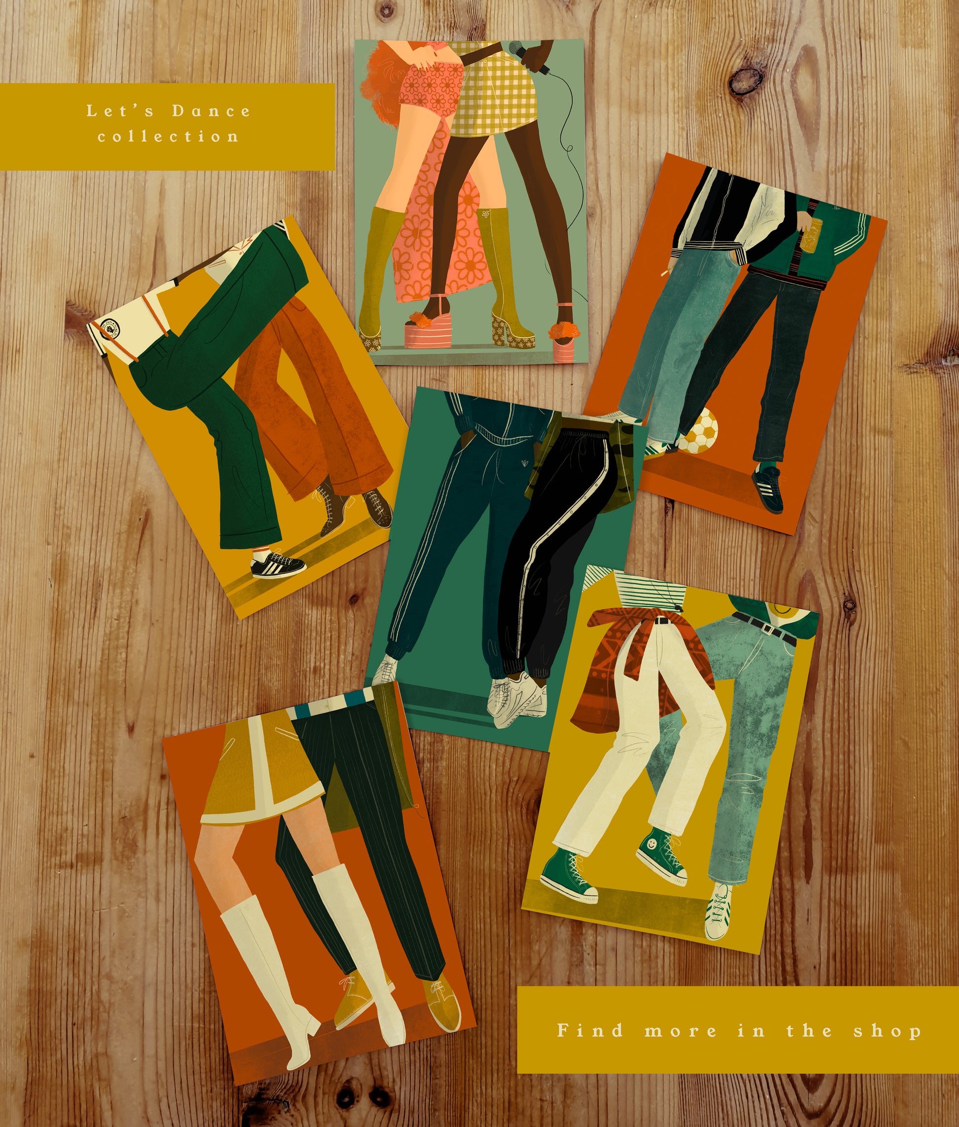 All artworks are unique illustrations created by Emy Lou Holmes. The Let's Dance collection was drawn in Procreate & Photoshop.