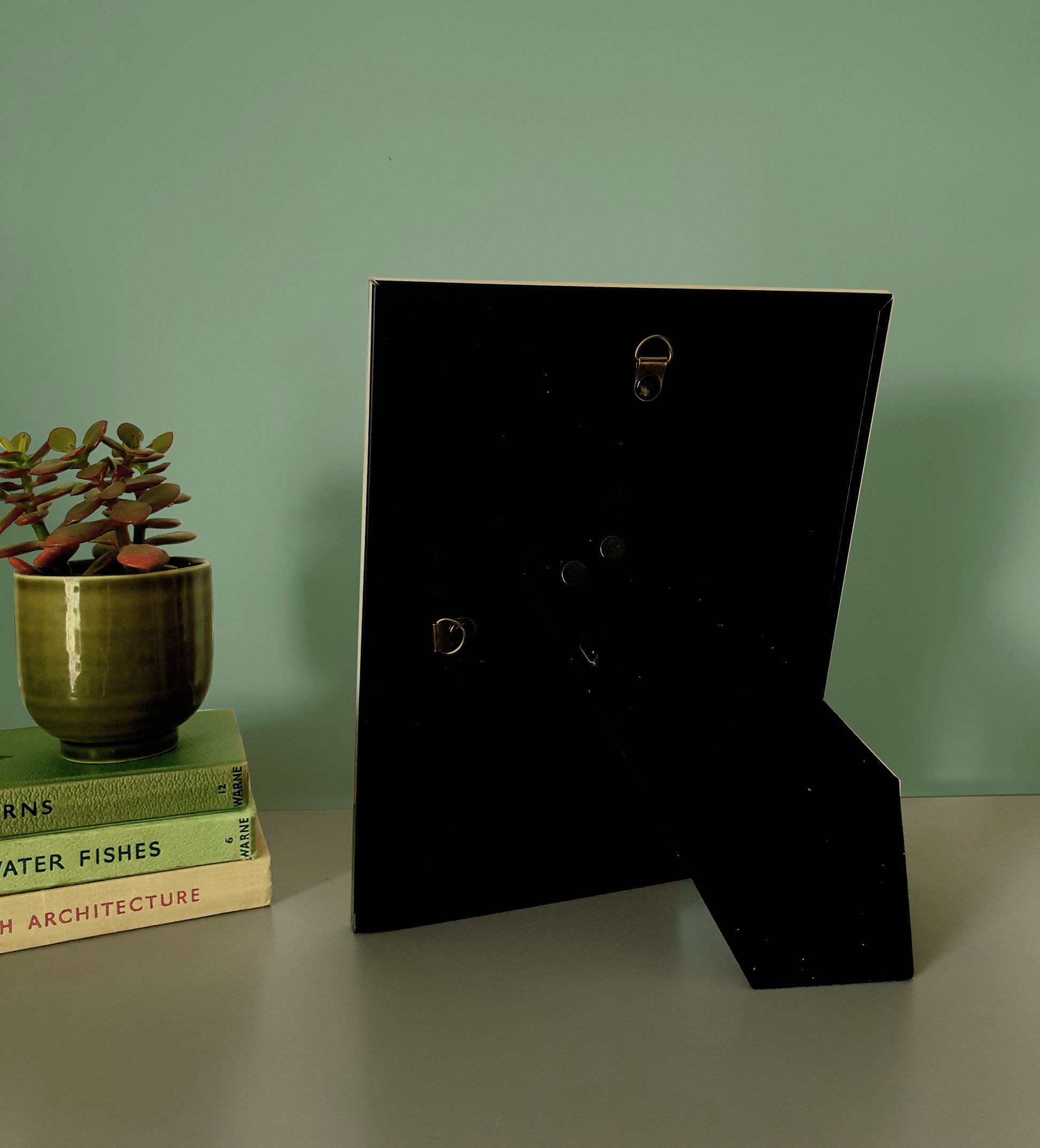- Velvet backing with stand & hanging hook
