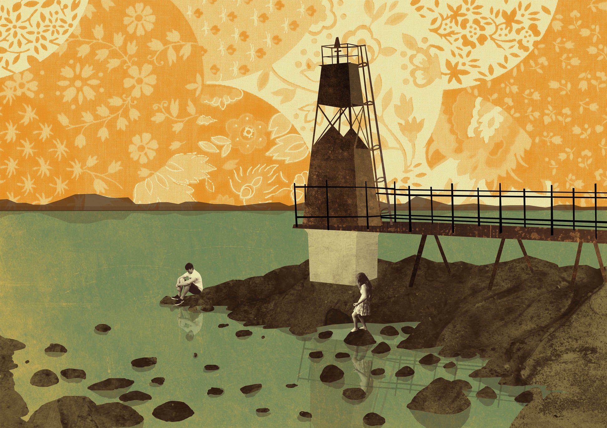 She creates her unique illustrations with a combination of hand drawn, digital artwork and collaged vintage fabrics and photographs.