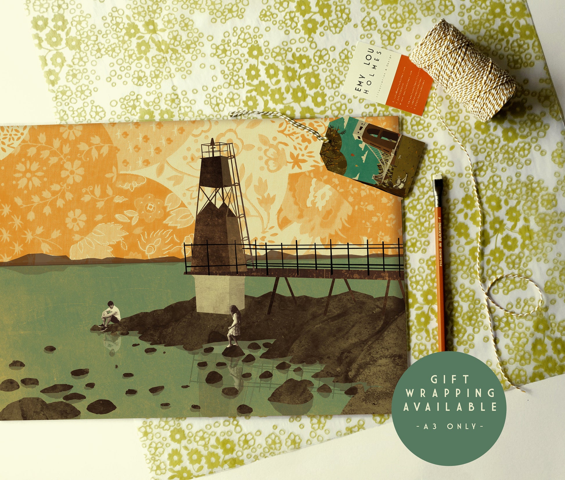 All artworks are unique illustrations created by Emy Lou Holmes. ‘Battery Point’ was drawn digitally in Procreate and Photoshop.
