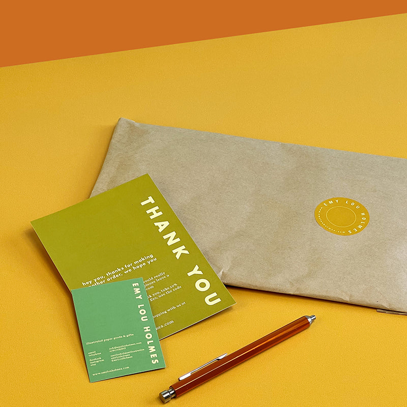 With a love of stationery, fine paper goods and mid century style, Emily has been creating vibrant art products as Emy Lou Holmes since 2016.